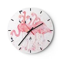 Relógio de parede - Relógio em vidro - Um grupo de flamingos cor-de-rosa em estilo artístico de aquarela. - 30x30cm - Conjunto cor-de-rosa - Decoração de parede moderna para a sala de estar, cozinha e quarto ARTTOR