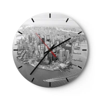 Relógio de parede - Relógio em vidro - Uma vista aérea da cidade em tons de preto e branco - 30x30cm - Como não amar? - Decoração de parede moderna para a sala de estar, cozinha e quarto ARTTOR