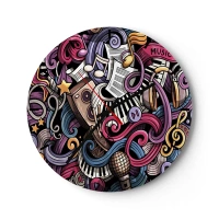 Relógio de parede - Relógio em vidro - Composição abstrata de motivos musicais e instrumentos - 30x30cm - Melodia complicada - Decoração de parede moderna para a sala de estar, cozinha e quarto ARTTOR