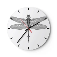 Relógio de parede - Relógio em vidro - Ilustração detalhada de uma libélula em preto sobre fundo branco - 30x30cm - Precisão da natureza - Decoração de parede moderna para a sala de estar, cozinha e quarto ARTTOR