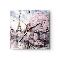 Relógio de parede - Relógio em vidro - Caminhada de abril por Paris - 30x30 cm