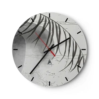 Relógio de parede - Relógio em vidro - Palmeira preta e branca com sombra da lua contra fundo de concreto - 30x30cm - O sutil exotismo da natureza - Decoração de parede moderna para a sala de estar, cozinha e quarto ARTTOR
