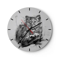 Relógio de parede - Relógio em vidro - Retrato de um tigre em abstração em preto e branco - 30x30cm - Sim, estou a ouvir atentamente - Decoração de parede moderna para a sala de estar, cozinha e quarto ARTTOR