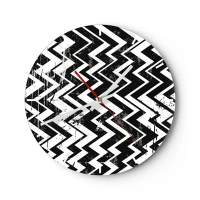 Relógio de parede - Relógio em vidro - Padrão em zigue-zague preto e branco com efeito artístico desgastado - 30x30cm - Zig-branco, zag-preto - Decoração de parede moderna para a sala de estar, cozinha e quarto ARTTOR