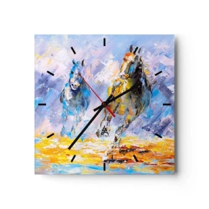 Relógio de parede - Relógio em vidro - Galopando através do brilho - 30x30 cm