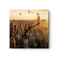 Relógio de parede - Relógio em vidro - Metrópole dourada - 30x30 cm