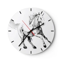 Relógio de parede - Relógio em vidro - Desenho de um cavalo galopando em um fundo branco - 30x30cm - Alma Indomável - Decoração de parede moderna para a sala de estar, cozinha e quarto ARTTOR