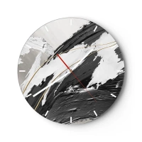 Relógio de parede - Relógio em vidro - Pinceladas dinâmicas em preto, branco e cinza - 30x30cm - Abstração em grande escala - Decoração de parede moderna para a sala de estar, cozinha e quarto ARTTOR