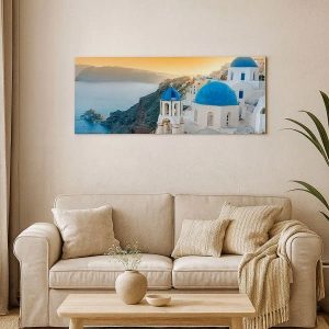 Quadro em tela - Santorini - abraçada às rochas - 140x50 cm