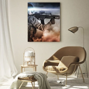 Arte de Parede - Simplesmente um Herói - Soldado em Ação Disparando um Rifle Contra um Fundo de Fumaça