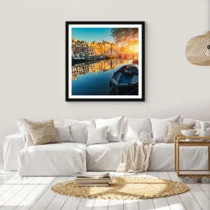 Pôster com moldura preta - Manhã em Amsterdã - 40x30 cm