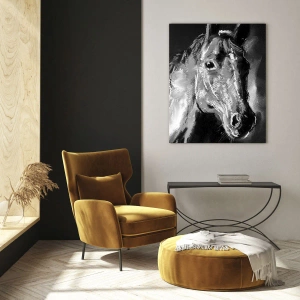 "Retrato de um Cavalo em Preto e Branco" é uma proposta para os amantes da simplicidade, elegância e soluções modernas de design de interiores. Esta pintura não apenas decora, mas também inspira, introduzindo estilo e harmonia únicos ao espaço.