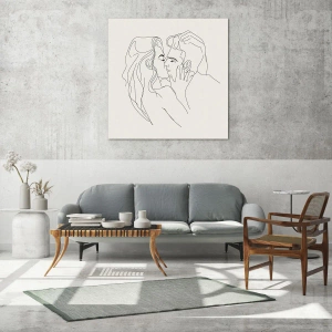 O motivo apresentado na pintura é feito no estilo Minimalismo, tornando-se um complemento decorativo excepcionalmente elegante. A ausência de cores e as linhas sutis focam a atenção nas emoções e nos gestos, tornando esta obra ideal para espaços modernos e clássicos. Esta forma de arte fala ao espectador sem palavras desnecessárias, confiando apenas no poder do simbolismo e da imaginação.