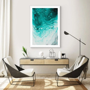 Pôster em moldura branca - Derreter a branco e turquesa - 50x70 cm