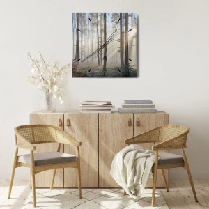 Relógio de parede - Relógio em vidro - Névoa brilhando através das árvores na floresta - 30x30cm - O nevoeiro também acordou - Decoração de parede moderna para a sala de estar, cozinha e quarto ARTTOR