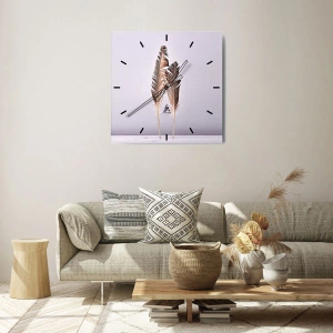 O relógio é feito de vidro de 4mm de espessura. A tecnologia de relógio está em conformidade com a classe de segurança 2B2 de acordo com a norma PN-EN 12600:2004, o que garante resistência ao impacto. O relógio em vidro está pronto para ser pendurado – possui um gancho de metal montado na parte de trás do relógio e um espaçador de espuma, que regula a distância uniforme entre o relógio e a parede. O relógio tem um mecanismo de fluxo silencioso alimentado por uma bateria de 1,5 V - bateria AA (a bateria não está incluída).