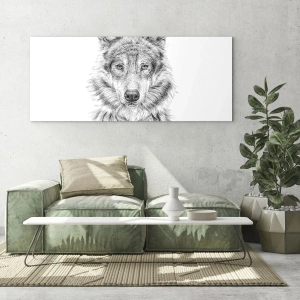 - Esta pintura retrata um esboço realista em preto e branco de um lobo. A forma minimalista e a expressão facial expressiva transmitem o caráter e a força do animal. Perfeito para interiores modernos e austeros.
