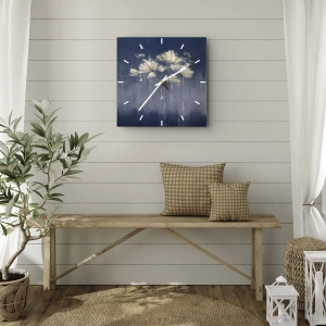 Relógio de parede - Relógio em vidro - Traços abstratos dourados em um fundo azul escuro - 30x30cm - Como pétalas ao vento - Decoração de parede moderna para a sala de estar, cozinha e quarto ARTTOR