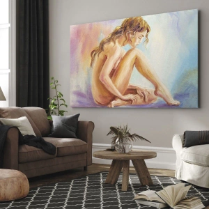 Quadro em tela - Uma figura delicada de uma mulher em um fundo pastel - 70x50cm - Ato de juventude - Decoração de parede moderna para a sala de estar e quarto ARTTOR