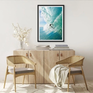 Pôster com moldura preta - Surfista em uma onda sob o sol - 50x70cm - Na crista da onda - Decoração de parede moderna para a sala de estar e quarto ARTTOR