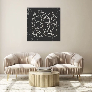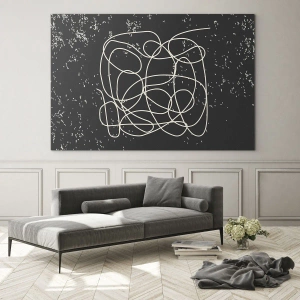 Quadro em vidro - Linha abstrata em forma de emaranhado em um fundo preto texturizado - 70x50cm - Pensamentos errantes - Decoração de parede moderna para a sala de estar e quarto ARTTOR
