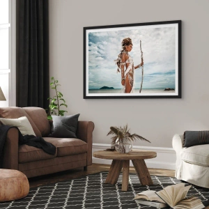- O pôster retrata uma figura estilizada de uma mulher em um cenário tropical. Esta composição elegante e sofisticada enfatizará perfeitamente o caráter de interiores modernos.