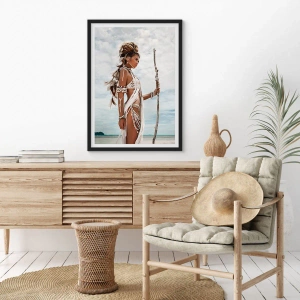 Pôster com moldura preta - Figura estilizada de uma mulher em um cenário tropical - 50x70cm - Rainha dos trópicos - Decoração de parede moderna para a sala de estar e quarto ARTTOR