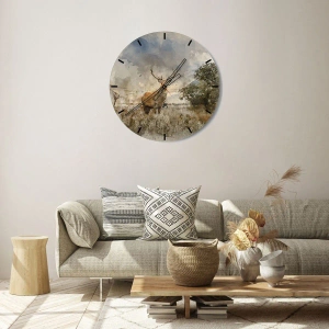 O relógio é feito de vidro durável de 4 mm de espessura. O vidro retém as cores naturais da impressão