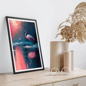 Pôster com moldura preta - Flamingos em um lago calmo - 50x70cm - O retiro de um pássaro - Decoração de parede moderna para a sala de estar e quarto ARTTOR