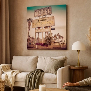 A tela é esticada na moldura. Os lados e bordas são impressos para criar uma continuação da imagem. O quadro está pronto para ser pendurado na parede. Cada produto tem um gancho ligado à moldura e um conjunto de montagem (parafuso + cavilha).