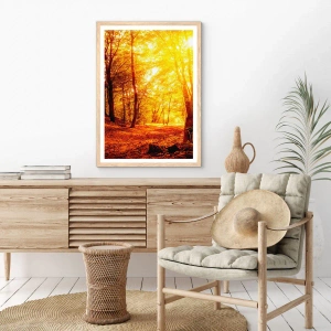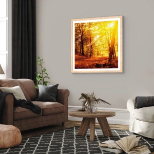 Pôster com moldura de carvalho claro - Rumo à clareira dourada - 60x60 cm