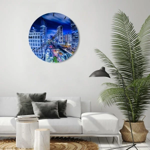 Relógio de parede - Relógio em vidro - Ritmos da cidade noturna - 30x30 cm