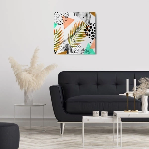O relógio de parede "Decoração com Folha de Palmeira" combina padrões geométricos modernos com a delicadeza das folhas em aquarela. O motivo em tons de verde e laranja combina perfeitamente com diversos estilos de interiores, adicionando frescor e expressividade.