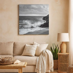 A tela é esticada na moldura. Os lados e bordas são impressos para criar uma continuação da imagem. O quadro está pronto para ser pendurado na parede. Cada produto tem um gancho ligado à moldura e um conjunto de montagem (parafuso + cavilha).
