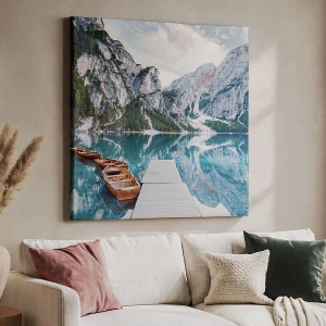 A tela é esticada na moldura. Os lados e bordas são impressos para criar uma continuação da imagem. O quadro está pronto para ser pendurado na parede. Cada produto tem um gancho ligado à moldura e um conjunto de montagem (parafuso + cavilha).