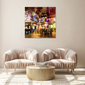 O motivo de uma cidade à noite iluminada por neon simboliza a energia, a criatividade e o movimento constante que são a essência da vida em uma metrópole. Esta pintura inspira ação, traz dinamismo ao interior e encanta com sua visão artística da paisagem urbana.
