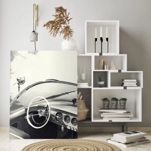 O quadro em vidro é feito de vidro de 4mm de espessura. As bordas do vidro têm um corte trapezoidal fosco. O quadro é segura de usar e pronto para pendurar – tem ganchos de metal presos à parte de trás do quadro e e espaçadores de espuma para regular a distância uniforme do quadro da parede.