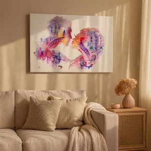 Adicione a pintura "Aquarela romântica representando silhuetas de amantes" ao seu interior para criar uma atmosfera de amor, harmonia e beleza. Este produto ARTTOR combina estética, funcionalidade e a mais alta qualidade, o que tornará qualquer ambiente mais único.