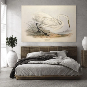 Arte de Parede - A Dama nos Juncos - Ilustração Vintage de uma Garça Branca à Beira da Água