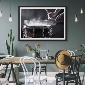 O pôster "Pulse of Music" é uma composição dinâmica que captura artisticamente a essência da paixão musical. O elemento central da imagem é uma batida de tambor, que cria um efeito de spray de pó, conferindo ao conjunto uma energia e expressividade extraordinárias. O esquema de cores em preto e branco enfatiza o estilo moderno e o minimalismo, tornando o pôster um complemento ideal para interiores contemporâneos.