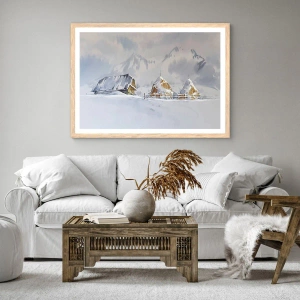 - Este pôster retrata uma paisagem pitoresca de inverno com uma casa de campo e um palheiro tendo como pano de fundo uma montanha. Tons pastel sutis e uma paisagem tranquila criam uma atmosfera única de harmonia.