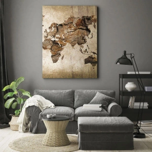 A impressão em tela "Mapa-múndi em estilo de madeira" combina qualidade, beleza e funcionalidade. É uma decoração que traz aconchego, harmonia e inspiração a qualquer interior.