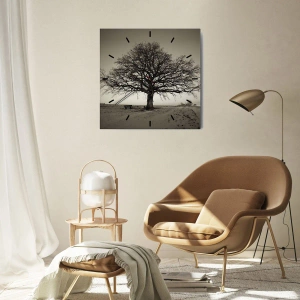 Relógio de parede - Relógio em vidro - Uma árvore solitária em um campo aberto em tons sépia - 30x30cm - Daqui para a eternidade - Decoração de parede moderna para a sala de estar, cozinha e quarto ARTTOR