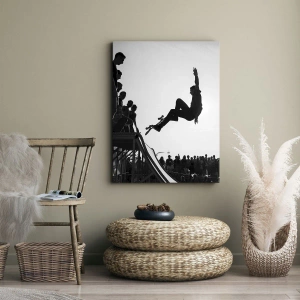 A tela é esticada na moldura. Os lados e bordas são impressos para criar uma continuação da imagem. O quadro está pronto para ser pendurado na parede. Cada produto tem um gancho ligado à moldura e um conjunto de montagem (parafuso + cavilha).