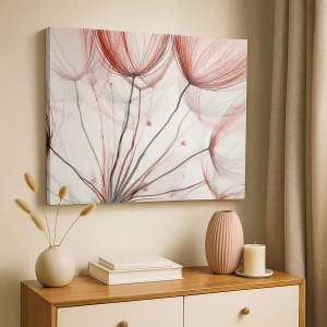 A tela é esticada na moldura. Os lados e bordas são impressos para criar uma continuação da imagem. O quadro está pronto para ser pendurado na parede. Cada produto tem um gancho ligado à moldura e um conjunto de montagem (parafuso + cavilha).