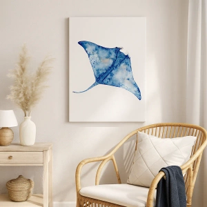 Graças à sua composição minimalista e cores harmoniosas, a pintura confere aos interiores uma atmosfera calma e tropical. O tom azul da arraia sobre fundo branco realça a elegância e o frescor, tornando este motivo ideal para salas de estar, quartos ou escritórios.