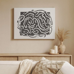 Quadro em tela - Abstração em preto e branco em estilo geométrico - 70x50cm - Resumo: dança da alegria - Decoração de parede moderna para a sala de estar e quarto ARTTOR
