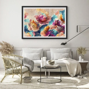 Pôster com moldura preta - Esplendor colorido do buquê - 70x50 cm