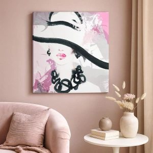 Quadro em tela - Retrato de uma dama a preto e rosa - 30x30 cm
