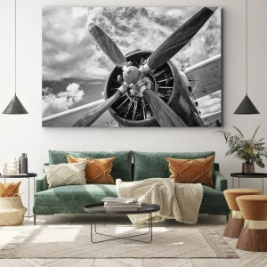 Esta impressão é a escolha perfeita para quem valoriza a elegância e o minimalismo na decoração. Uma hélice de avião contra um fundo de nuvens traz um toque de nostalgia ao interior, ao mesmo tempo que lhe confere um caráter moderno. A decoração "Conquistador do Ar" será perfeita para uma sala de estar, escritório ou escritório, enfatizando seu estilo individual.